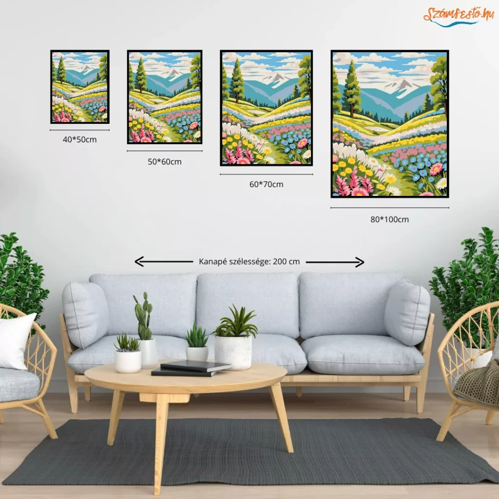Méret, Itt tudod kiválasztani, hogy a számfestő készletet mekkora méretben szeretnéd megvásárolni. Minél nagyobb a kép, annál egyszerűbb megfesteni, mert a mezők is nagyobbak, így könnyebb a festés, mint a kisebb méreteknél. Méret :