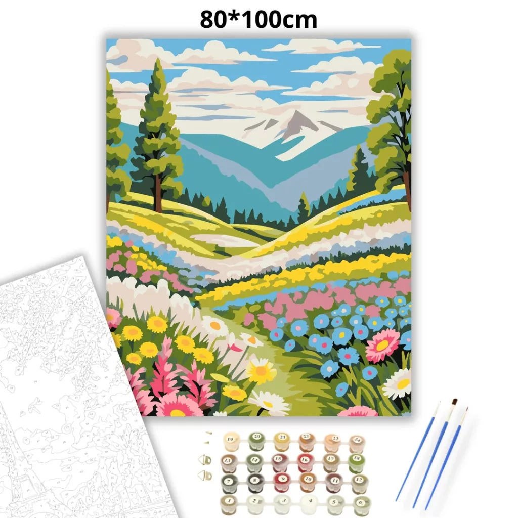 Virágos hegyi ösvény - számfestő készlet – 80×100 cm (Keret nélkül)