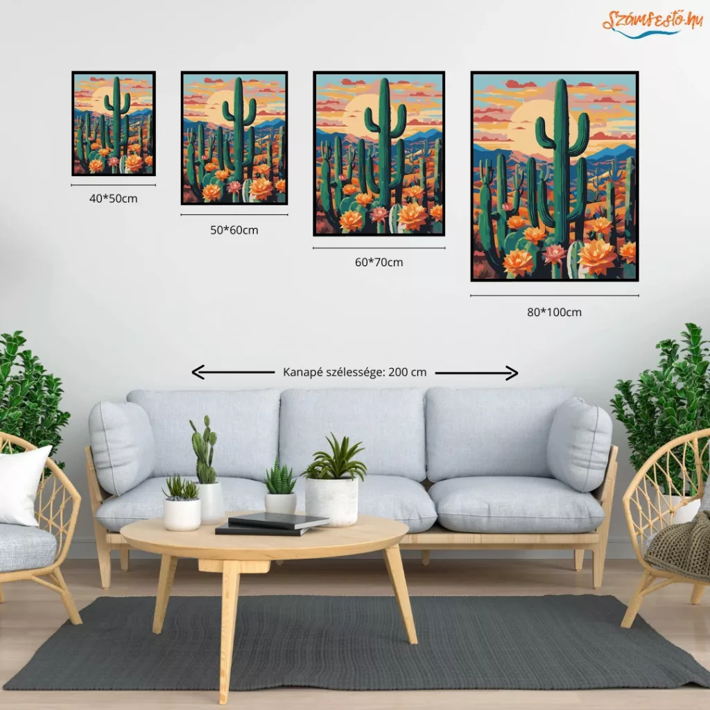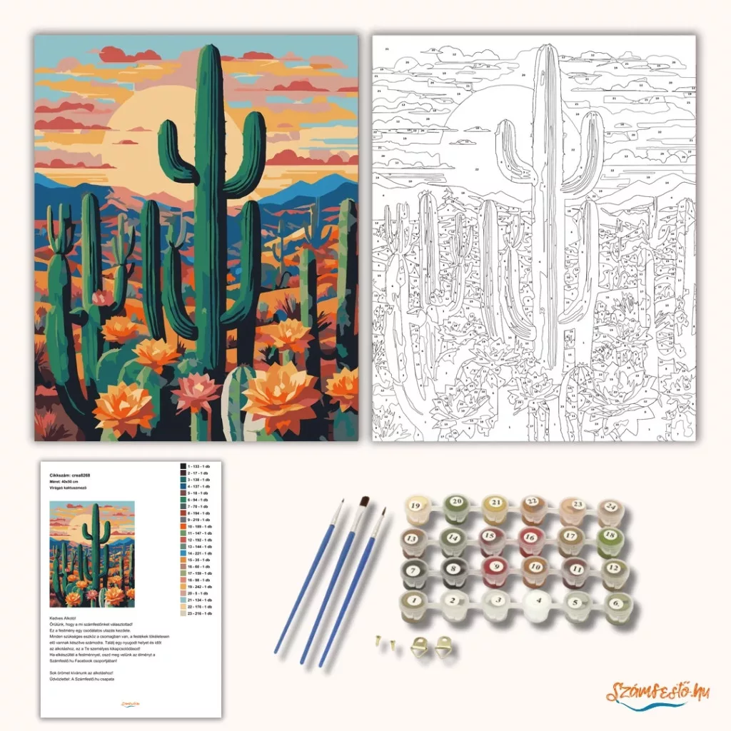 Virágzó kaktuszmező - számfestő készlet - Számfestő.hu - 80×100cm - Keretre feszítve
