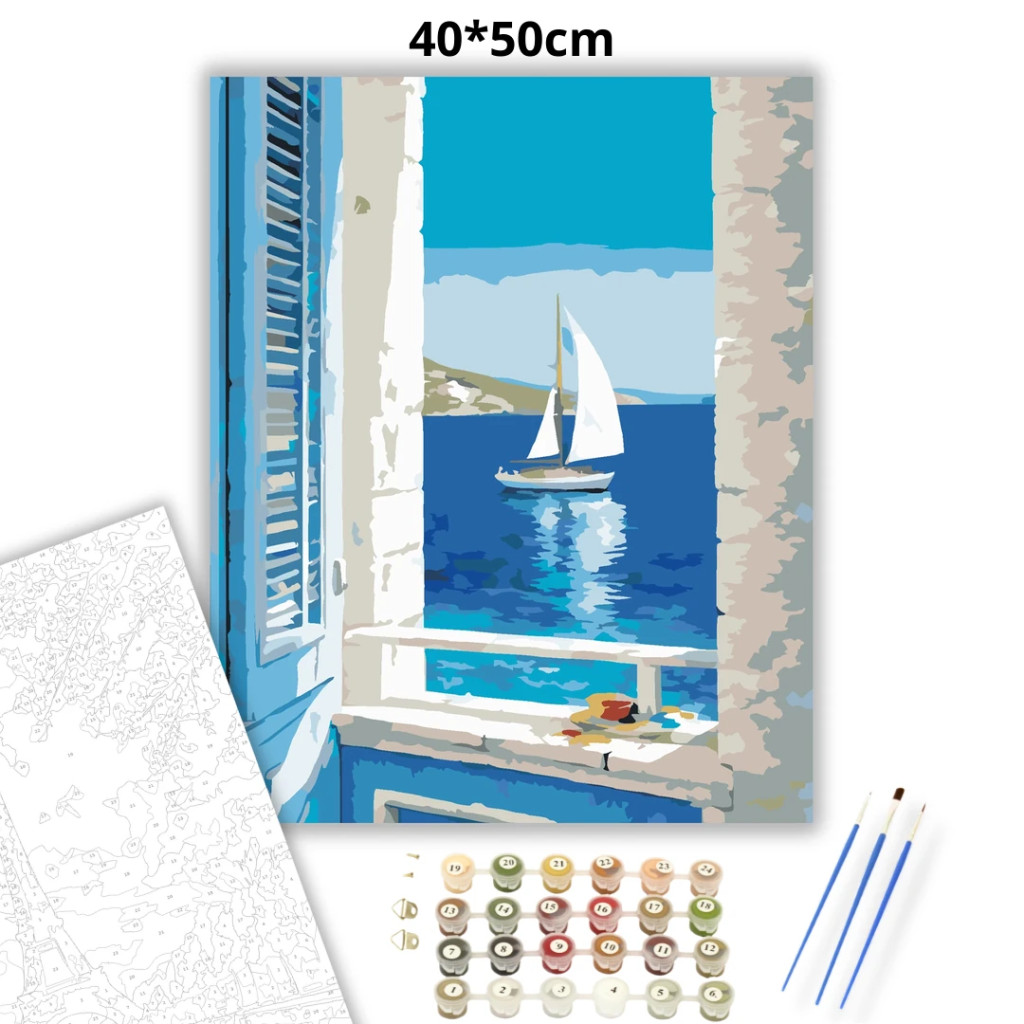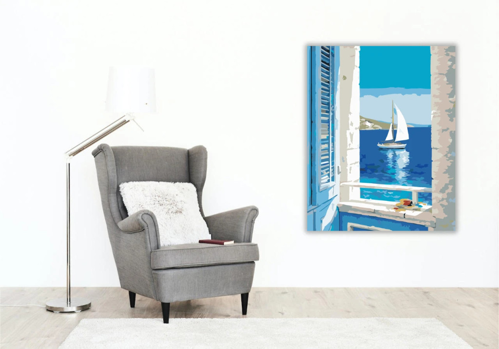 Vitorlás az ablakból - számfestő készlet – 40×50 cm (Keretre feszítve)