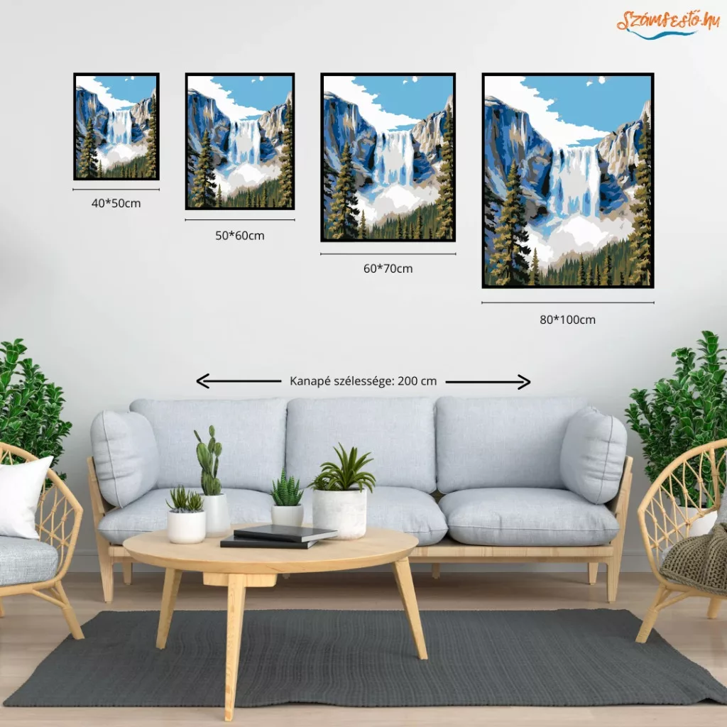 Zúgó yosemite-i vízesés - számfestő készlet - Számfestő.hu - 60×70cm - Keretre feszítve